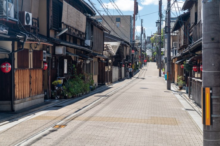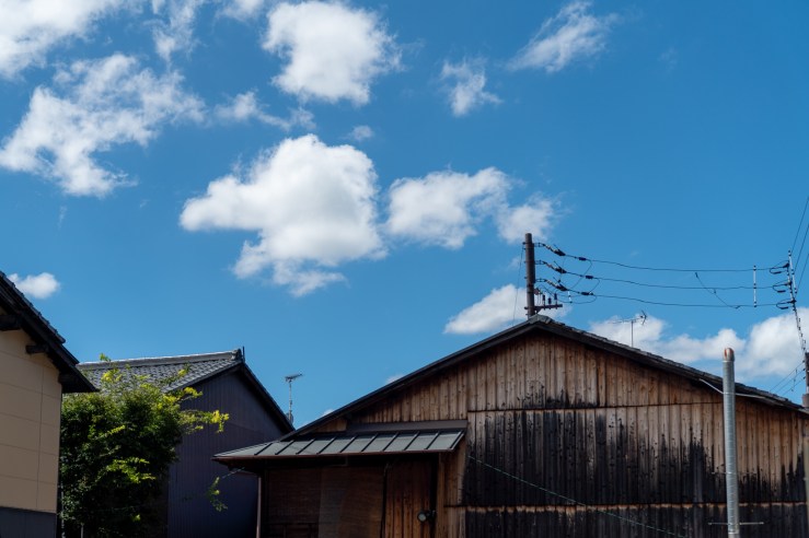 気温が上がるのにつれて空もどんどん青くなってくる。空と木造の壁とのコントラストが面白くてシャッターを切った。やっぱり京都はフォトジェニックな町だな。