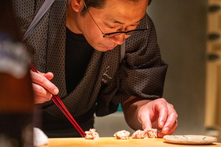 まずつまみから出されて握りへ行くコースの順番はオーソドックスだけどその内容がクリエイティビティに溢れてただ慣性でやってるものが一つもなくて一つ一つ旬の食材をどうすればお客さんを喜ばせようかと工夫した宇田津さんの姿が見えるものだった。おまかせで出してもらった日本酒のレベルも非常に高くて初めて飲む日本酒が多かった。