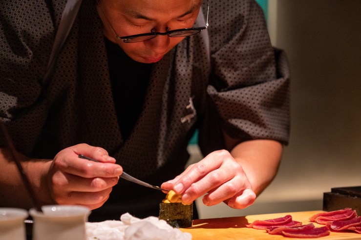 子どもが修学旅行で一日自由時間(?)ができたので奥様から美味しい鮨とか寿司とかシースーとか食べたいとリクエストがあったので以前から気になっていた中目黒に今年の2月にできた「宇田津 鮨」を予約した。