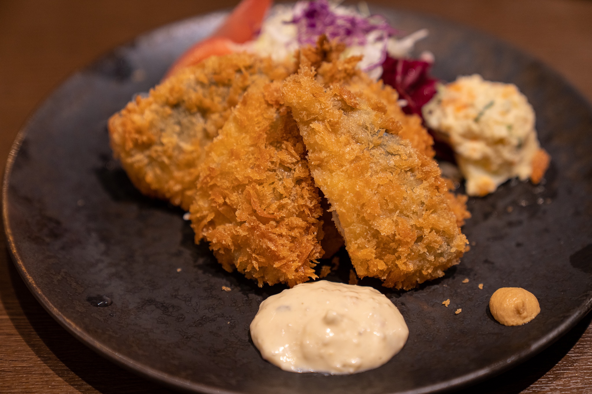 次はあじフライ!今が旬だから季節限定のメニューとしてあじ料理が多かった。人は5人だけど出てきたのは4切れ…ここは大人の対応で他の方に譲って味わえなかった。美味しそう!