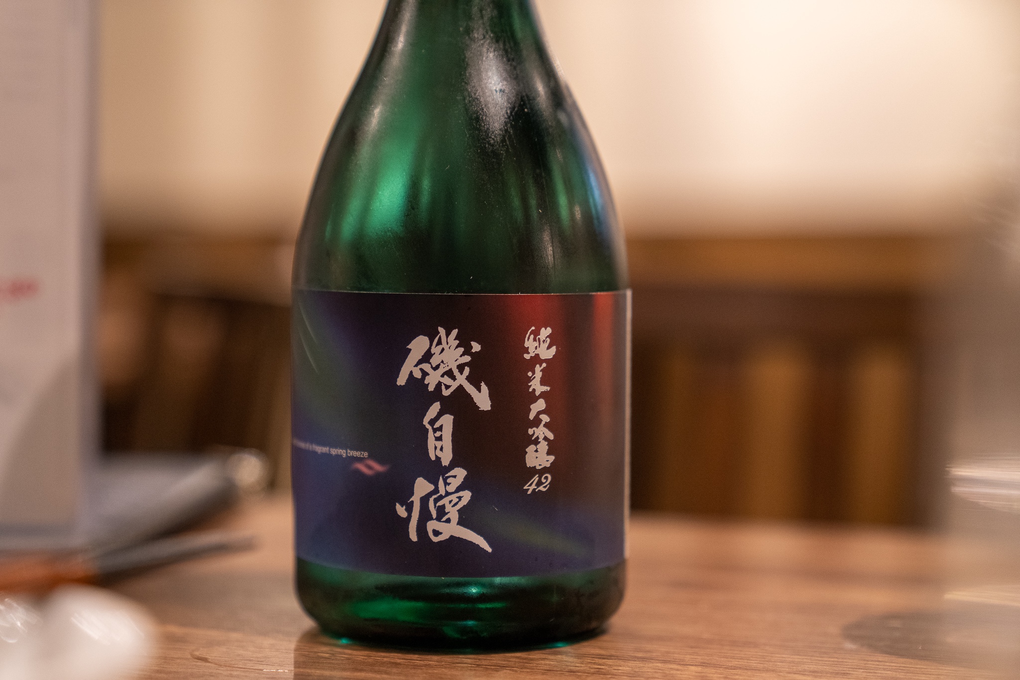 次は磯自慢 純米吟醸42。メニューに35と48があって48を注文したのに48が売り切れでメニューにない42しかないというので押し切って48の値段で42を出してもらった。かのように記憶してるけど実際会計はどうなってるのか分からない(笑)。