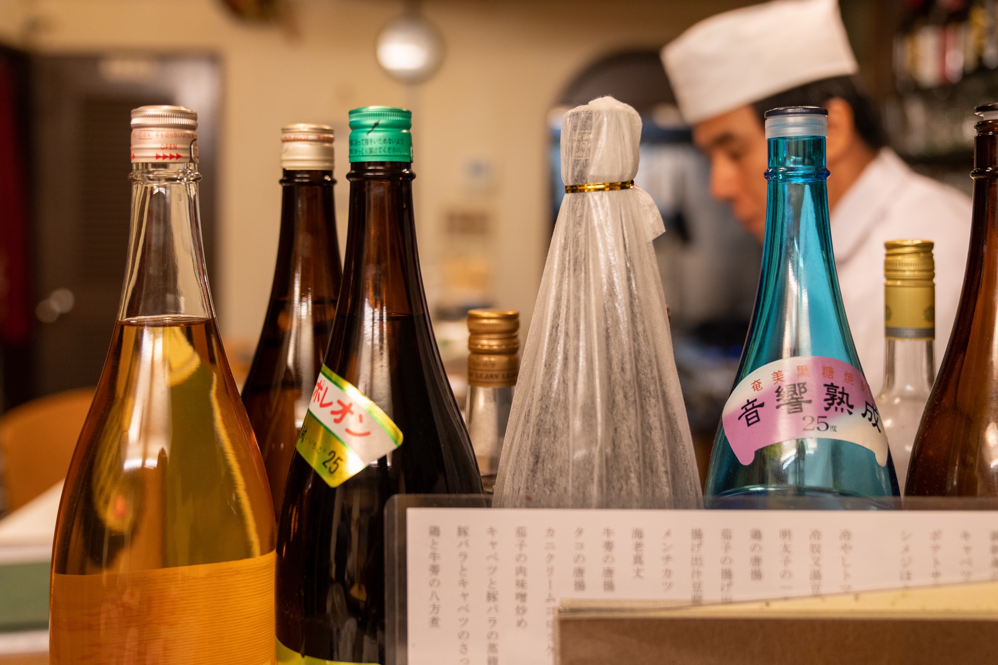 カウンターにも棚にも焼酎がいっぱい置いてあって名前が書いてあるボトルもたくさんあった。みんなに愛されてる感が伝わってくる。きっといい店なんだな。