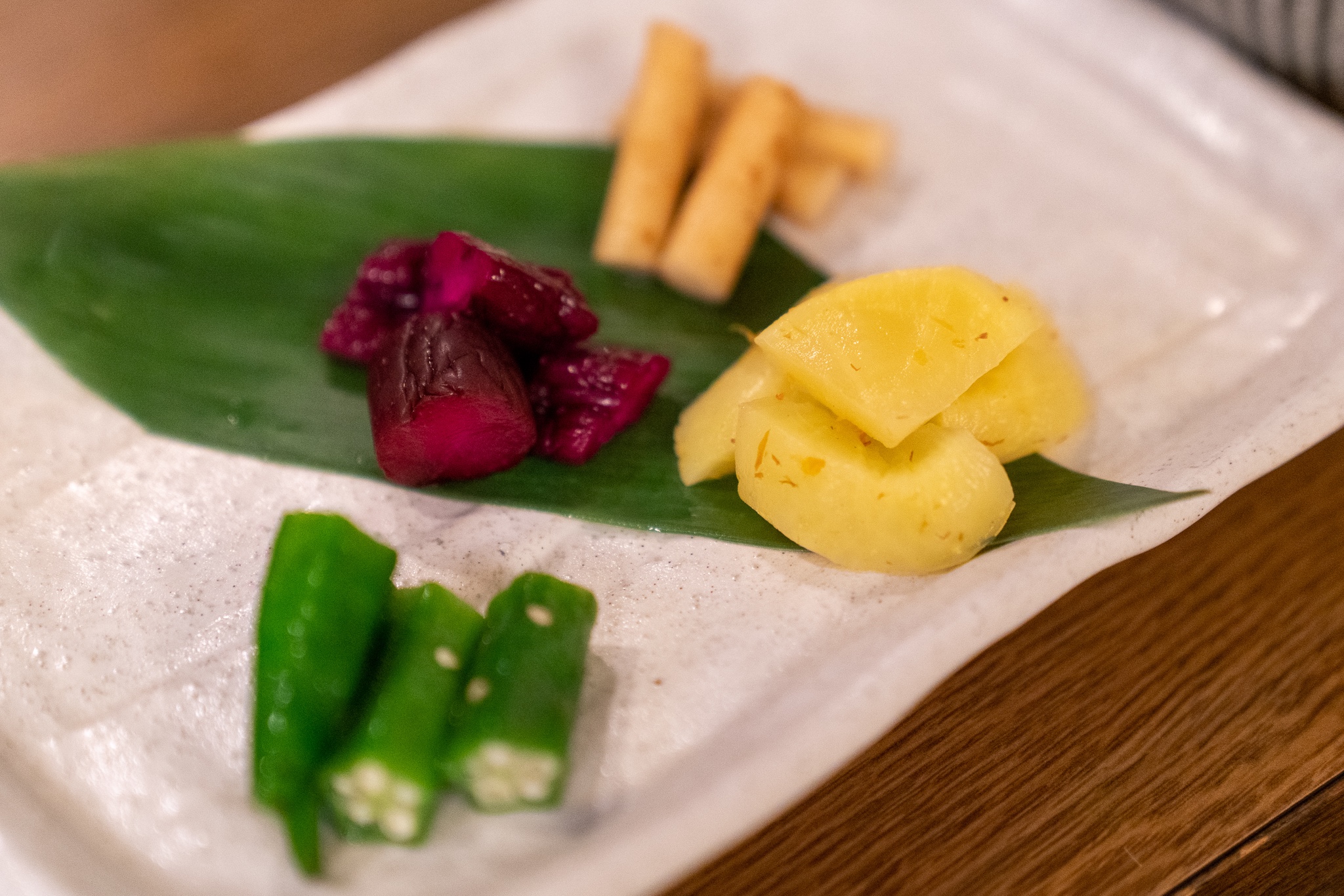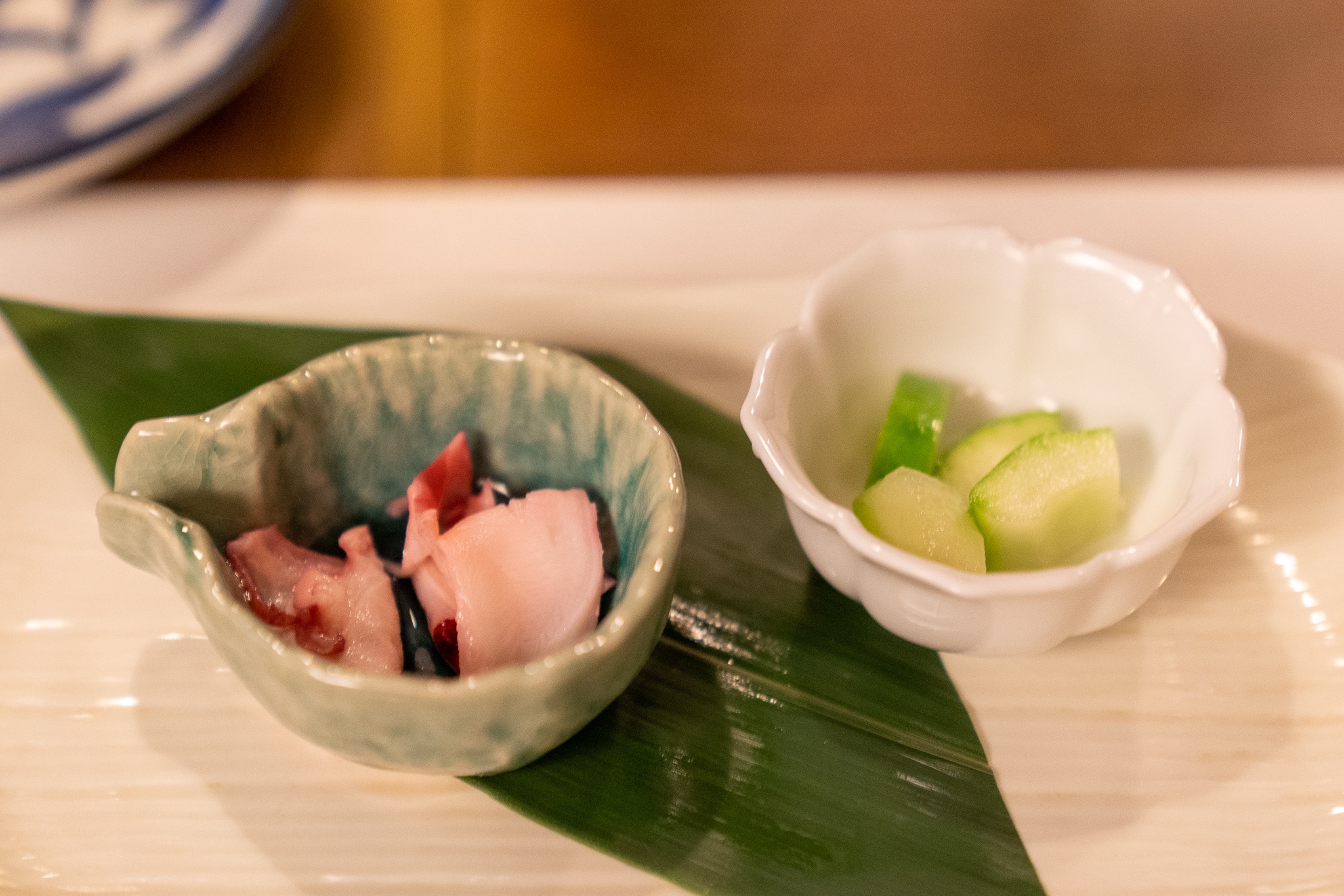 あっさりしてるお通しが暑い夏日にちょうどいい感じ。