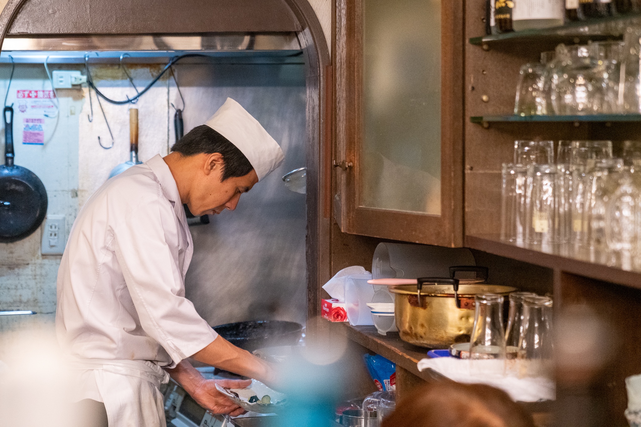 大将と女将さんの二人だけで切り盛りしてるお店でお客さんがいっぱい入ってきてたくさんの注文が飛んできても慌てずテキパキ捌いていく。