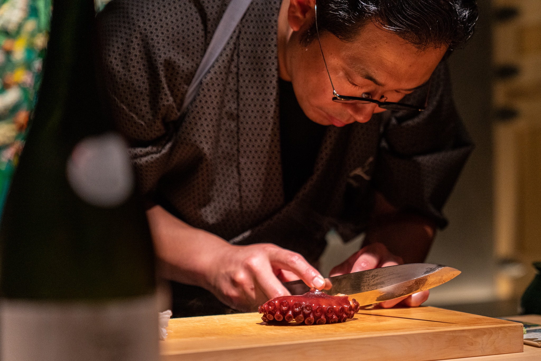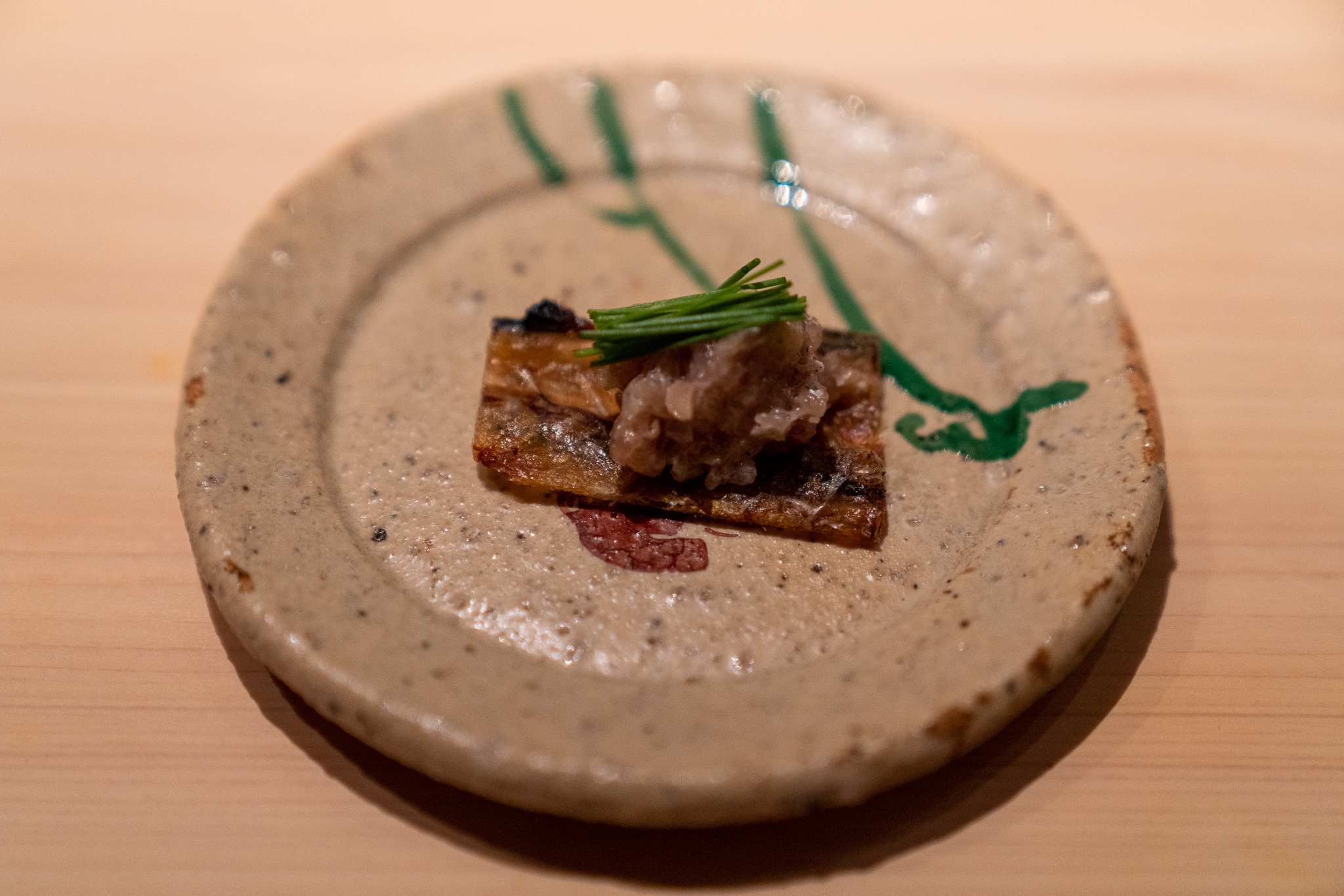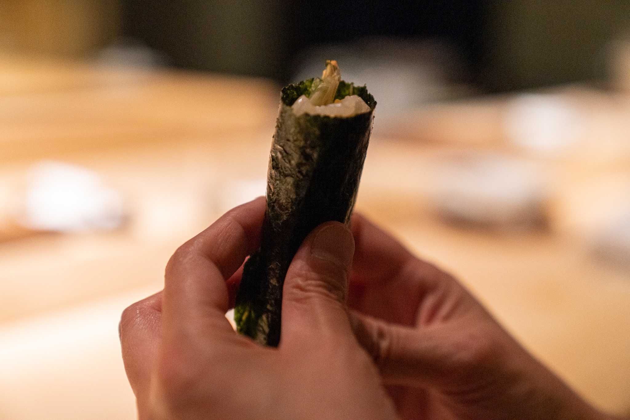 この日のために用意したお酒は「八海醸造 純米大吟醸 浩和蔵仕込み No. 6号 精米25% 使用酵母K-1801」の今は手に入らないレアな逸品。あ、甘くて旨くてフルーティーでたまらない。