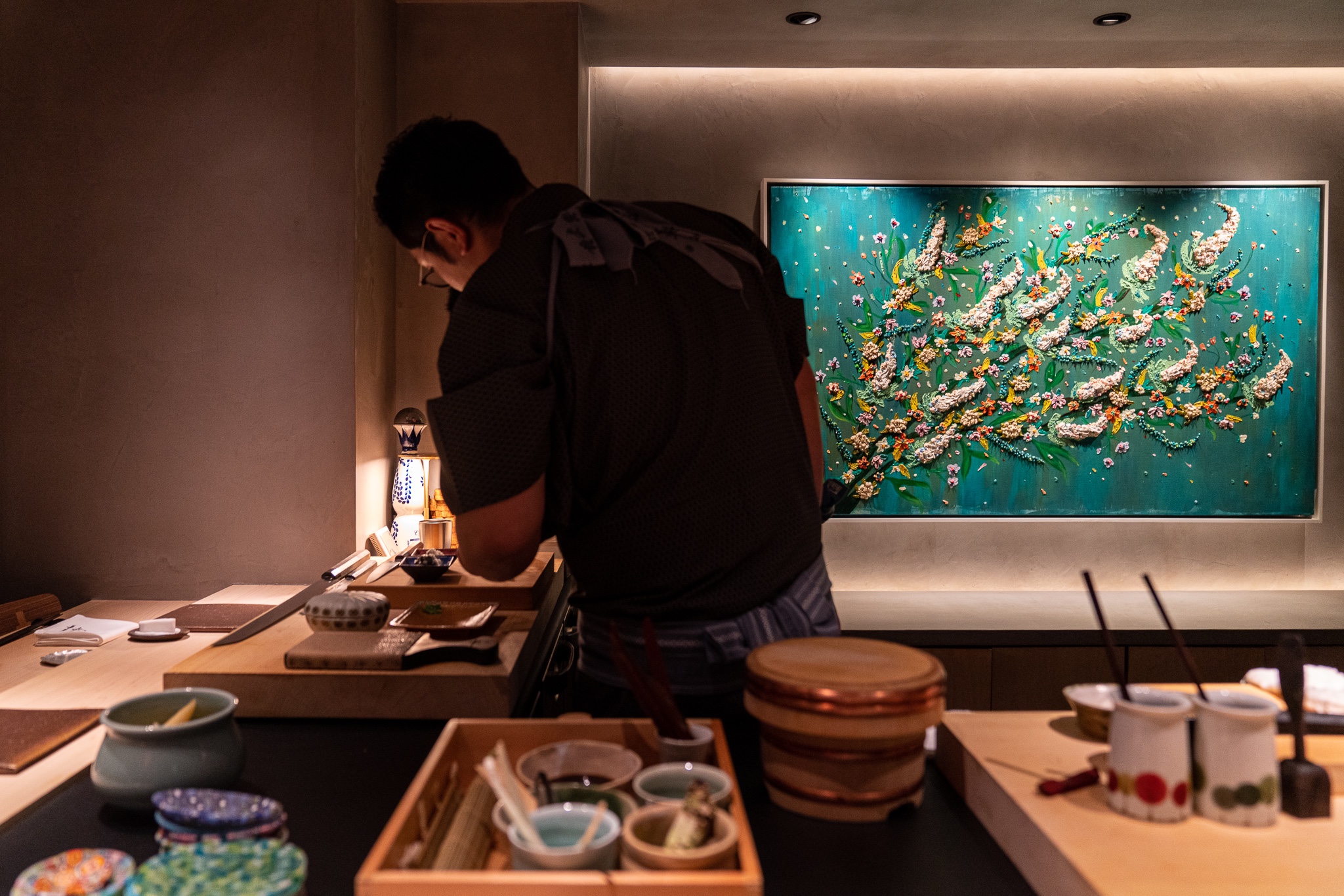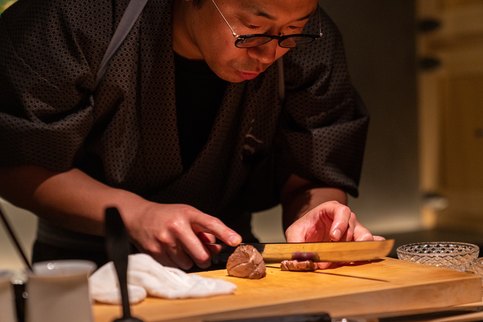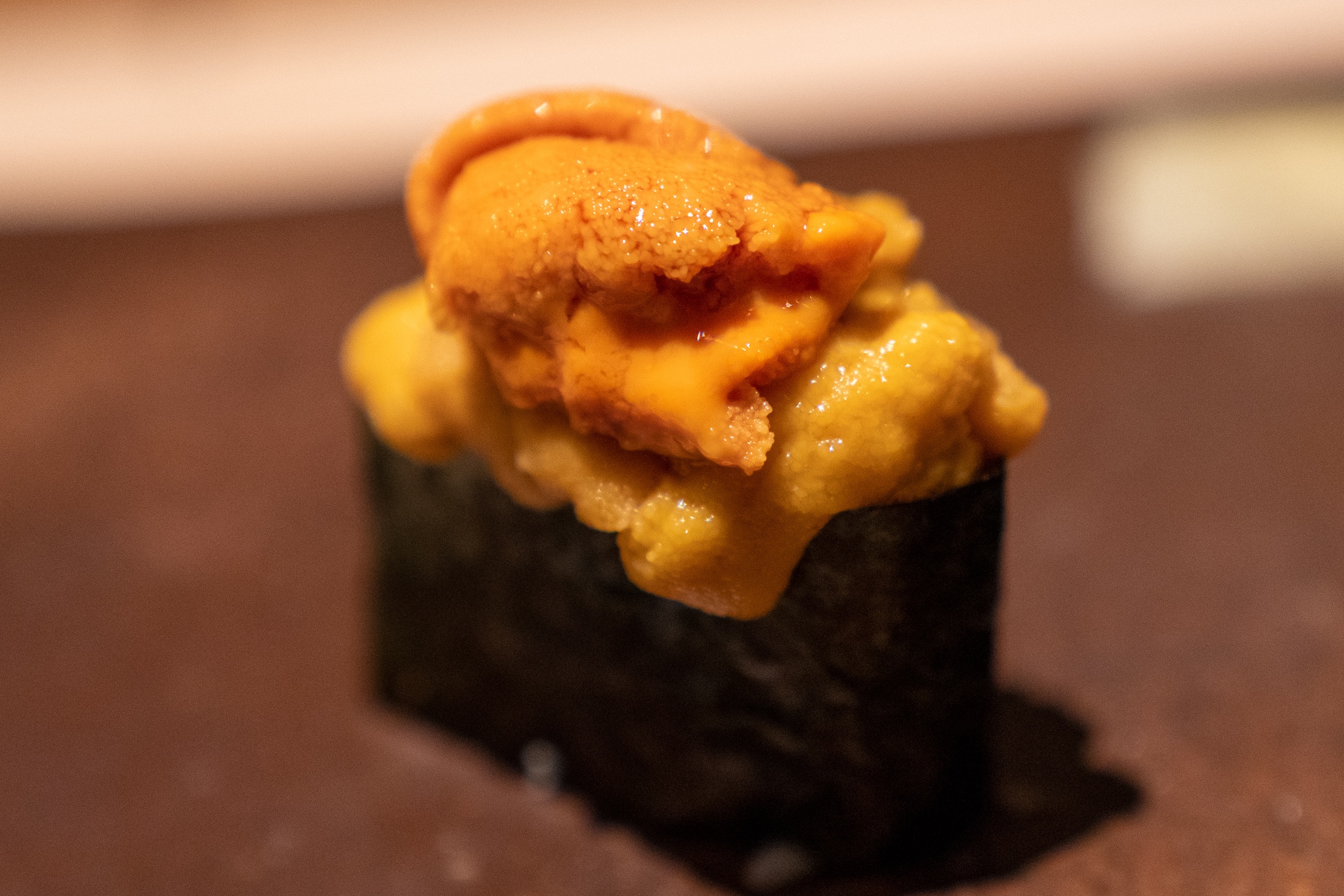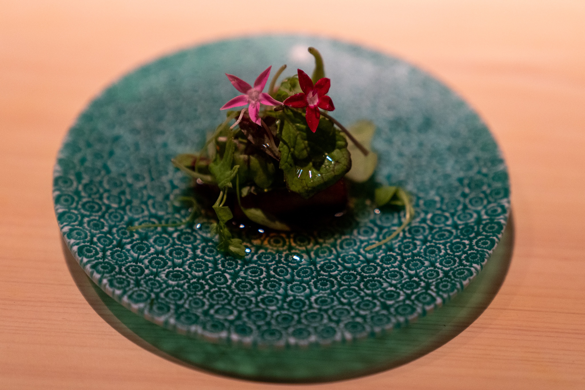 この日のために用意したお酒は「八海醸造 純米大吟醸 浩和蔵仕込み No. 6号 精米25% 使用酵母K-1801」の今は手に入らないレアな逸品。あ、甘くて旨くてフルーティーでたまらない。