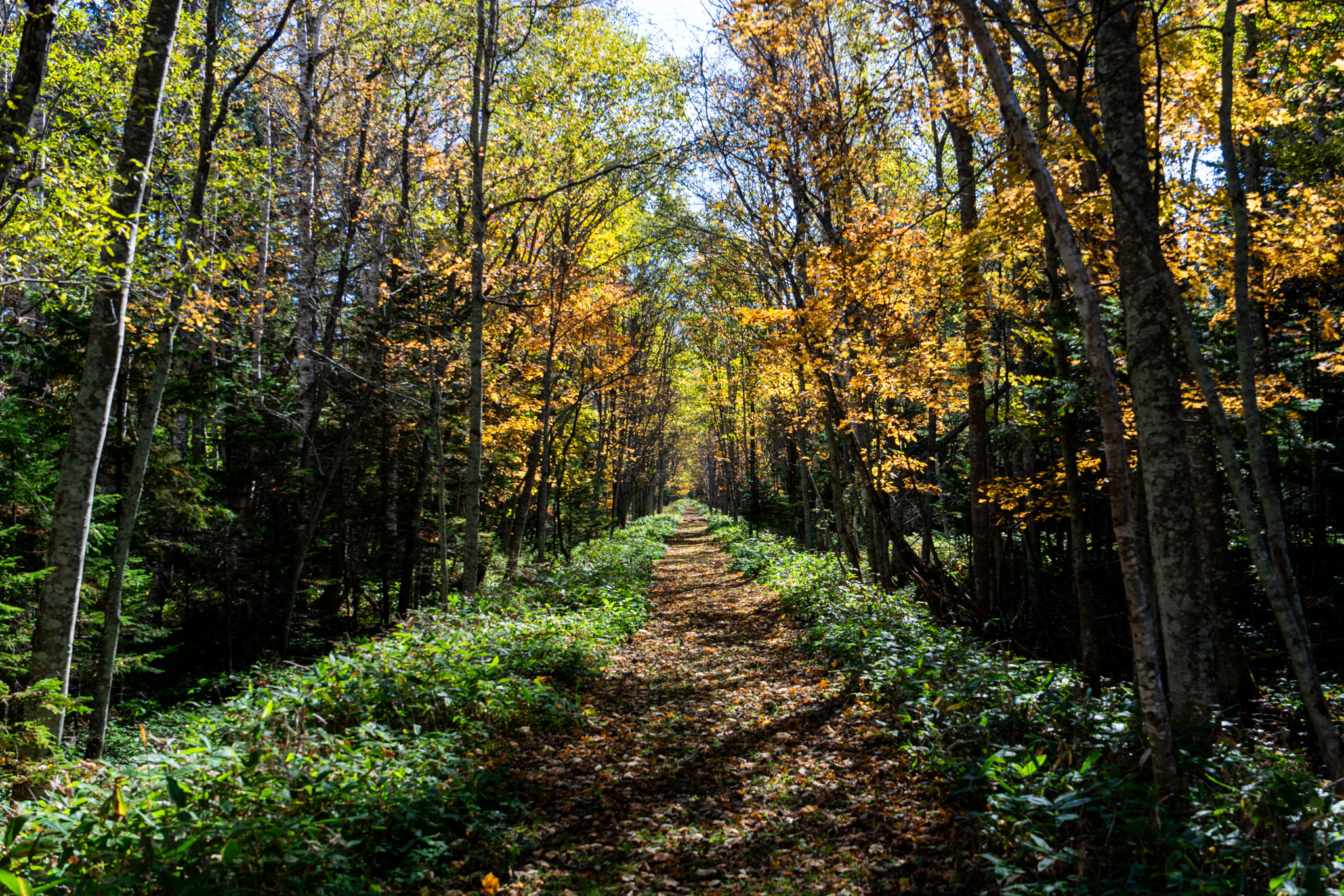 ちょっと寄り道してタウシュベツ川橋梁展望台へ。橋に行くこともできたが、ゲートの鍵をもらいに道の駅かみしほろまで行くのが面倒だったのでまた遠目で見ることにした。それにしても展望台まで歩いていく道が素敵で特にこの昔の線路跡(たぶん)に光が差してくる風景が大好き。