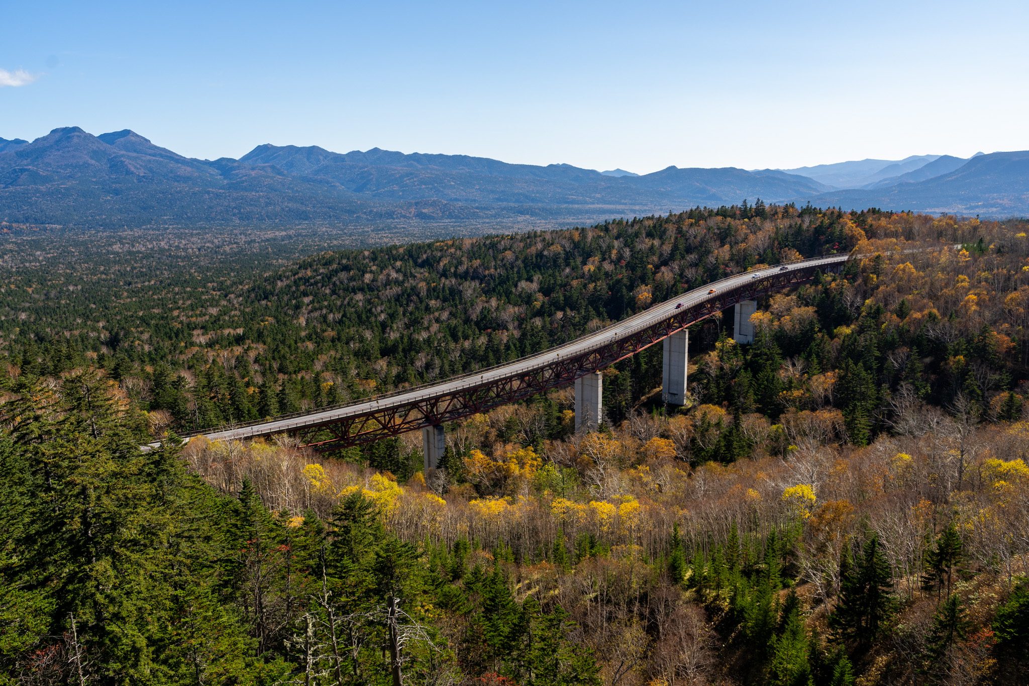 タウシュベツ川橋梁展望台の跡は三国峠へ。紅葉の中の松見大橋もなかなか素敵。10月の北海道は初めてだが、思ったより寒くもなく秋を満喫できてなかなかよかった。地球温暖化のせいなのか?7月8月より全然快適。北海道ツーリングは6月、9月、10月辺りがちょうどいいかもしれない。