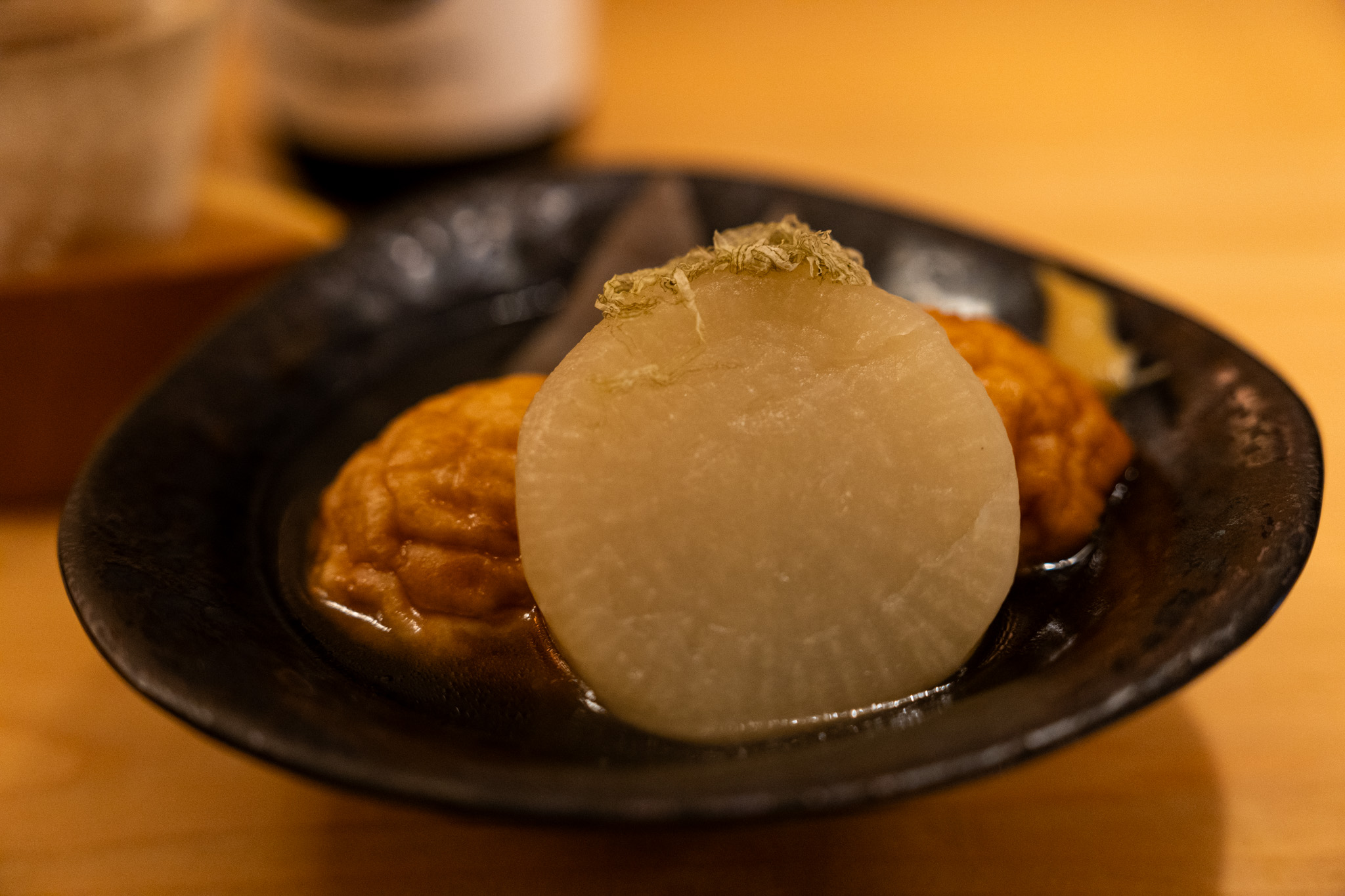 お腹はいっぱいだったが、軽くつまめるおでんがあったので日本酒のお供に頼んでみた。これがまた絶品でさっぱりして美味しい。